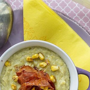Vi lascio alla ricetta della crema di mais e patate dolci con speck croccante allo sciroppo d’acero ricordandovi che se amate il mais sul blog potete trovare anche la ricetta dei deliziosi pancake salati al mais fresco, crema di avocado, pachino e bacon croccante con salsa al Rum.