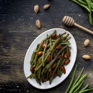 Oggi vi propongo un’idea sfiziosa per un contorno facile quanto particolare: fagiolini al miele con mandorle e salsa di soia.