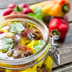 Eccomi oggi con una ricetta sfiziosa e super facile (come sempre) dedicata agli amanti come me del formaggio: formaggio caprino sott’olio con peperoni e olive taggiasche.