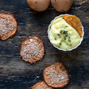 Oggi quindi propongo la maionese senza uova con latte di soia e delle sfoglie di patata leggerissime, mix davvero sfizioso e sano.