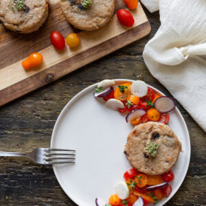 Una volta ripassate in padella poi servo le mie polentine estive condite e croccanti con una bellissima insalata di pomodori e basilico, cercando di sfruttare tutte le varietà che trovo da comprare e che offre la bella stagione.