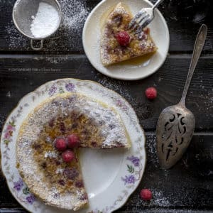 Se proprio non avete della frutta a disposizione…sappiate che la torta di latte e lamponi freschi con sciroppo d’acero è molto buona anche nella sua versione più semplice…senza alcuna aggiunta.